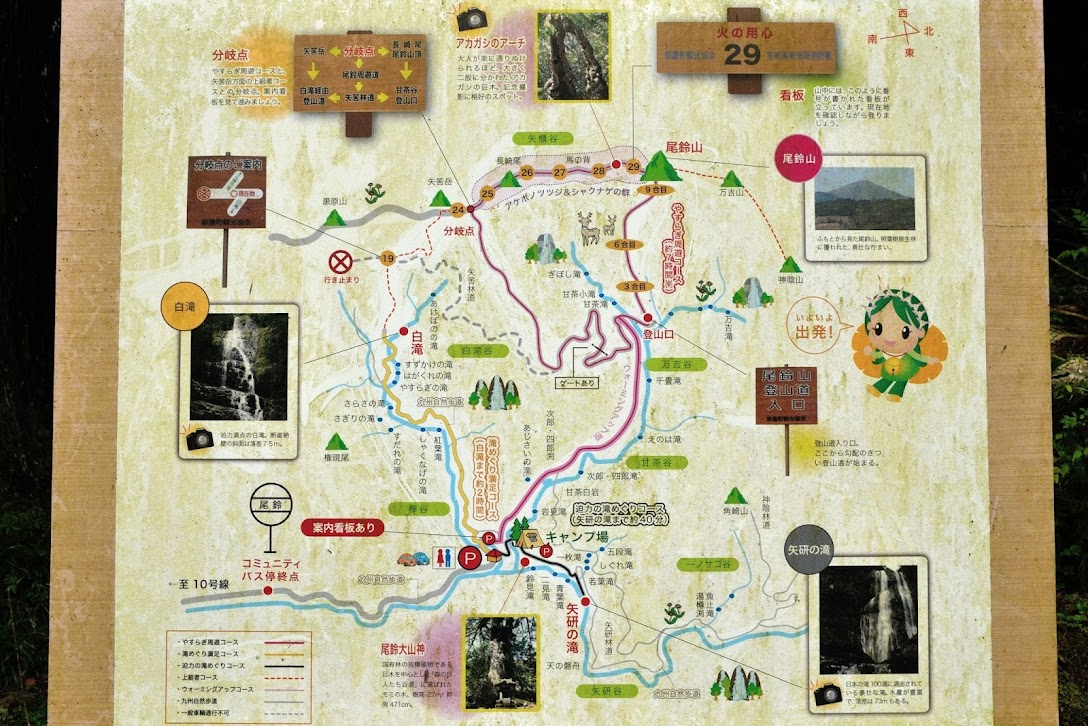 尾鈴山瀑布群は、大きく分けると矢研谷、甘茶谷、欅谷の3つのエリアからなります。