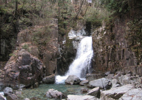 中津川市付知町。付知川上流の東股谷(不動渓谷)にそそぐ滝。